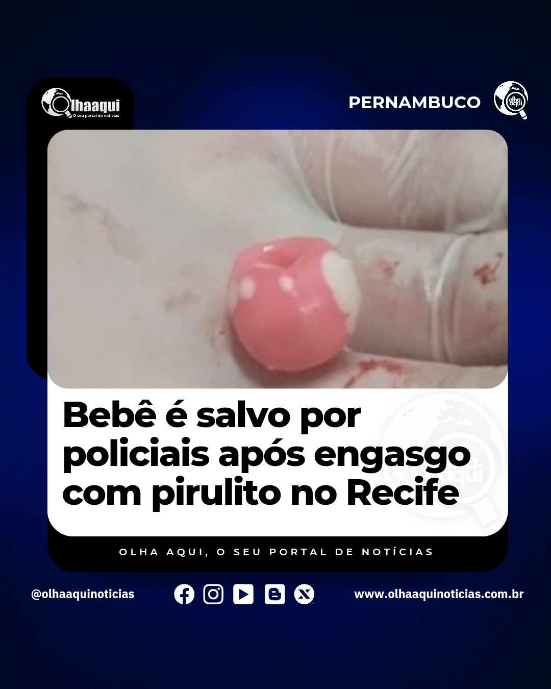 Um bebê de nove meses foi salvo por uma equipe policial do 1º BPTran, após se engasgar com um pirulito, na noite desta quinta-feira (2). A viatura realizava rondas nas imediações do cruzamento da Estrada dos Remédios com Abdias de Carvalho, quando se deparou com o pai da criança pedindo ajuda.